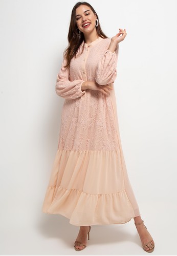 Nona Boho Maxi Dress Blush Pink Dress Lengan Panjang Lazada Indonesia